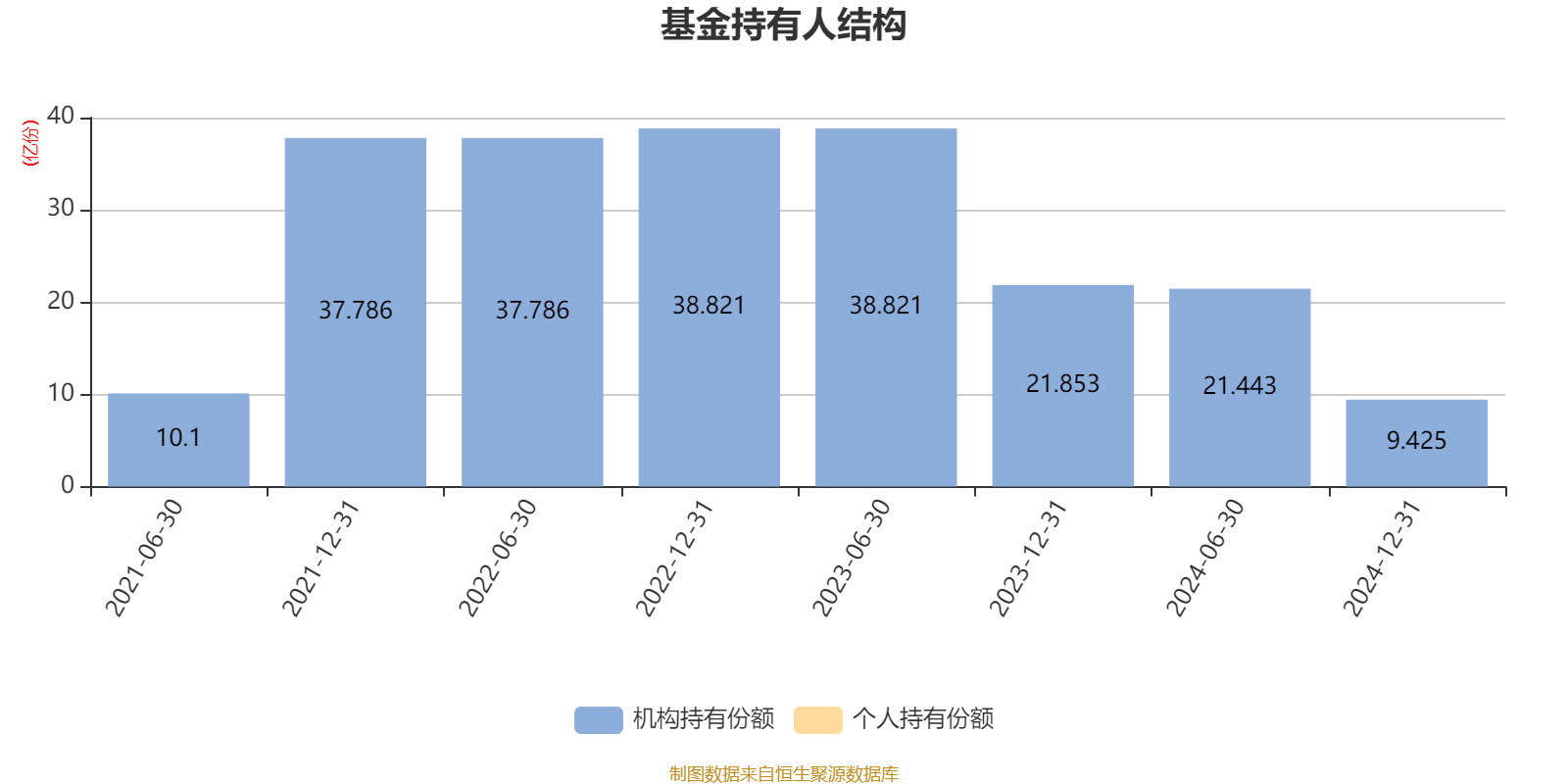 截至2024年12月31日,基金持有人共计210户,合计持有9.43亿份。机构持有份额占比100.00%,