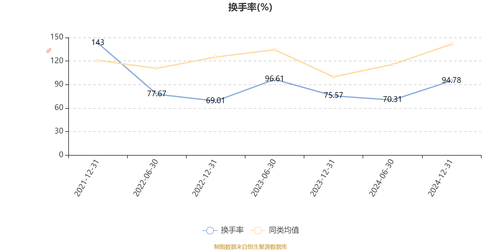 截至2024年12月31日,基金最近一年换手率约165.71%,持续3年低于同类均值。