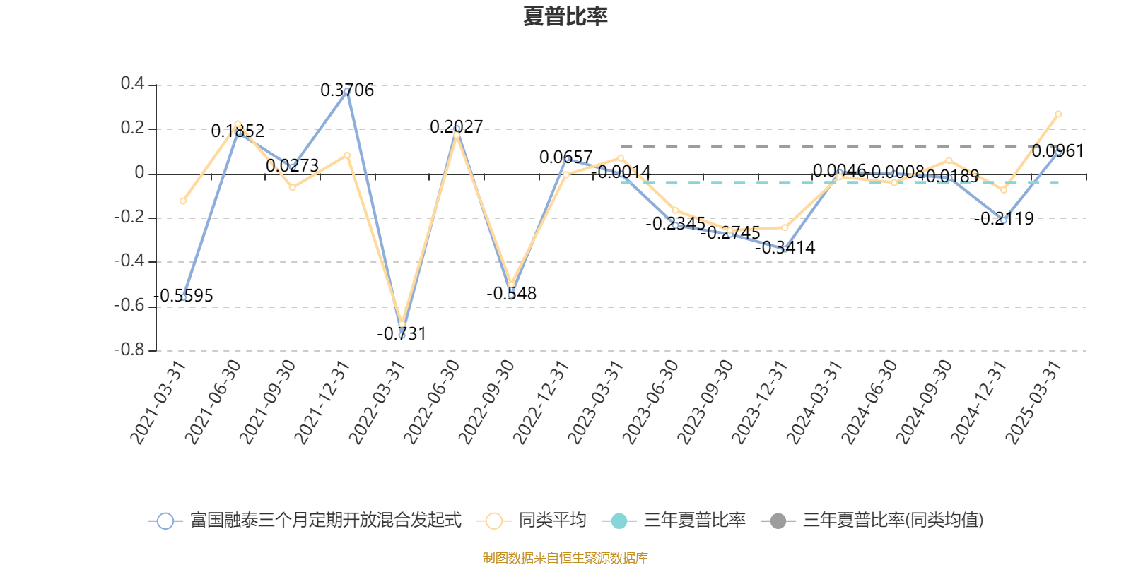 截至3月31日,基金近三年夏普比率为-0.0404,位于同类可比基金142/199。