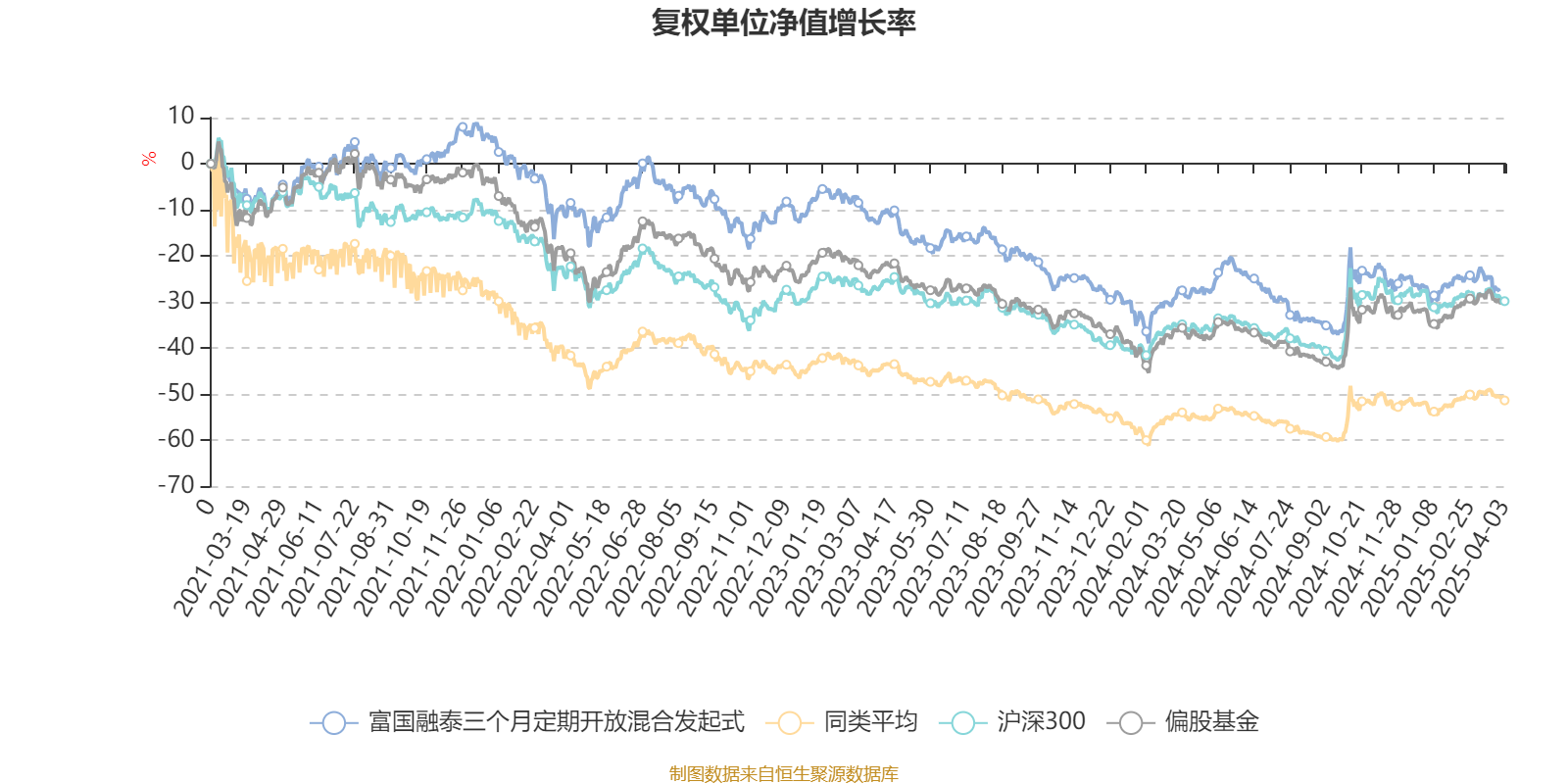 截至3月28日,富国融泰三个月定期开放混合发起式近三个月复权单位净值增长率为-1.23%,位于同类可比基金205/211;近半年复权单位净值增长率为1.60%,位于同类可比基金76/210;近一年复权单位净值增长率为1.42%,位于同类可比基金149/210;近三年复权单位净值增长率为-18.29%,位于同类可比基金121/197。